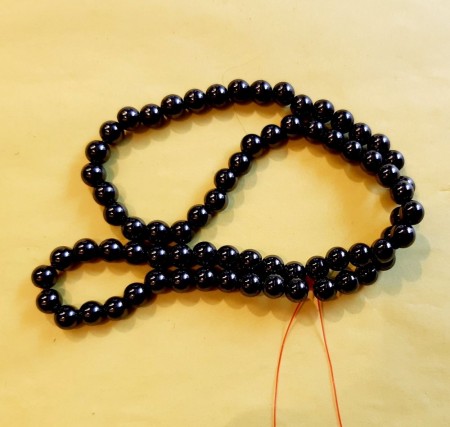 For å lage smykker med 6 mm perler, kan man bruke strikk til og med 0,8 mm eller tråd til og med 0,5 mm. . Velger du tyykkere strikk enn 0,8 mm, vil den ikke kunne træs gjennom hullet.