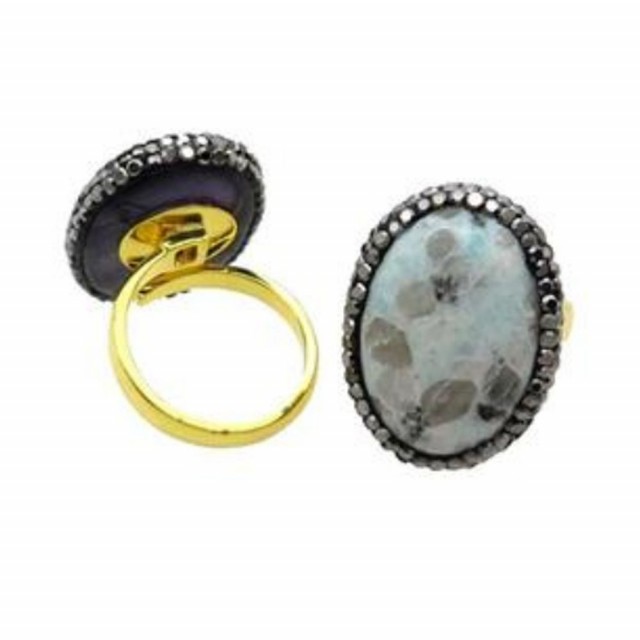 Pave Rhinestone ring i Jaspis, kiwi gullforgylt justerbar